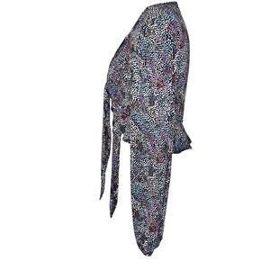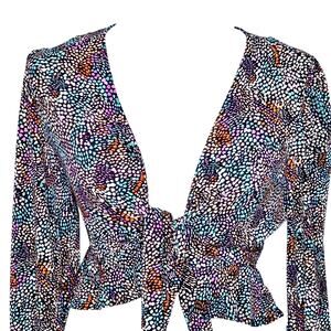 Bar III Colorful Tie Front V-Neck Ruffle Hem Balloon Sleeves Crop Top. Polyester Spandex. Size Medium. NWT! Measurements taken flat: