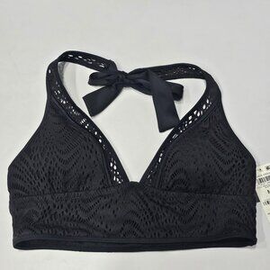 A crochet fabric lends a boho charm to this classic halterneck bikini by Bar III®.