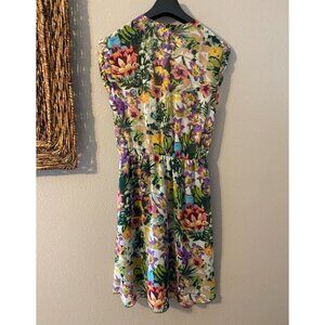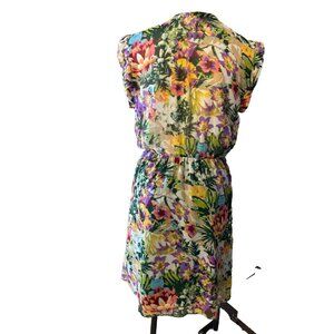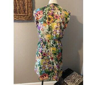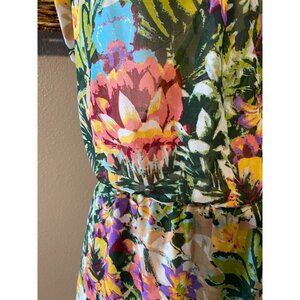 Bar III Dress Large 8 10 12 Green Purple Blue Floral Short Sleeve Sheer Washable