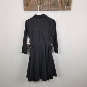 Bar III Dress Womens Small Black Half-Button Flounce Shirt Mini