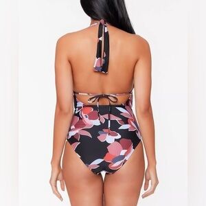 Bar III FLORAL MULTI Plunge Halter One-Piece Swimsuit, US XS New