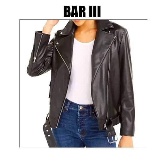 Bar III Faux Leather Buckle Jacket Black