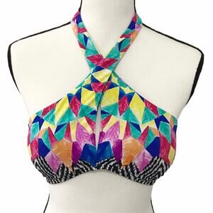 Bar III Feathered Daze Crossover High Neckline Swim / Bikini Top - Medium - NWT