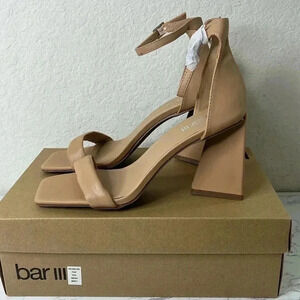 Squared toes and angular heels create bold dimension in the chic two-piece design of the Appel sandals from Bar III.