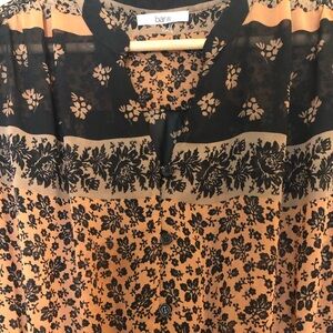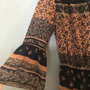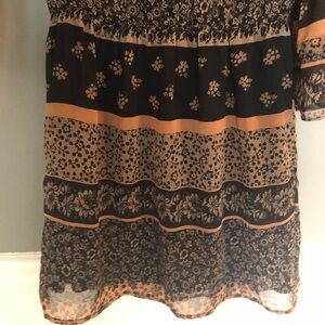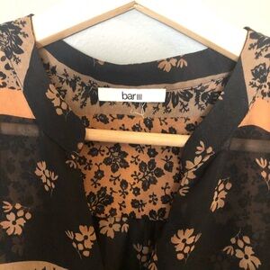 Super cute floral Bar III dress. Bottom is lined, great for fall or winter. Do not see size on dress, but is probably a XS. Does not fit me anymore.