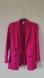 Stylish fuchsia blazer with a double-breasted design. Features sleek black buttons. Ideal for a bold, modern look.
