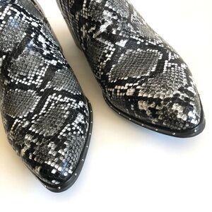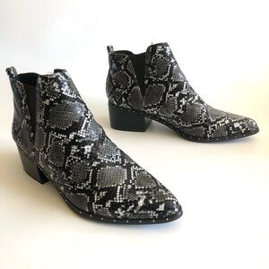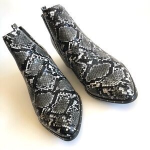 Bar lll Gabby snakeprint pull on booties in excellent gently used condition with one missing stud, see last picture.