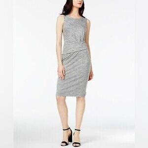 Keywords: Bar III dress, gray dress, sleeveless dress, size medium, midi dress, casual dress, form-fitting dress, versatile dress, great condition.
