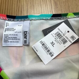 New with tags tropical print bikini bottom from Bar III, size XL. High waisted with gathered details on sides. Bold multicolor tropical print that makes them great to pair with multiple colors of tops.