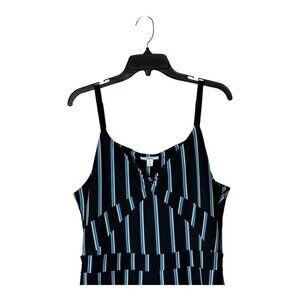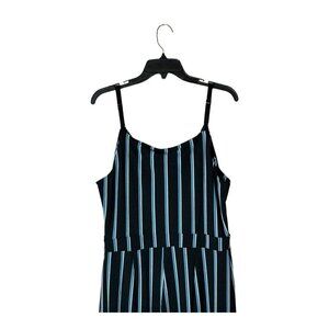 Bar III Black, Blue And White Striped Twist Front V Neck Adjustable Strap Wide Leg Jumpsuit Women's Size 14