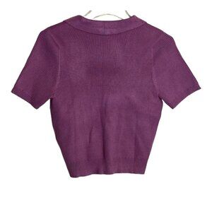 Step into this Bar III Women's Short Top in Blissful Berry color, size Large, is a stylish high waisted pull over sweater. Made from a comfortable blend of 72% Rayon and 28% polyester. Camera lighting off more on purple color Size Large Sku 2319