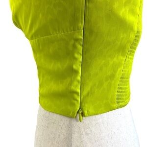 Beautiful tone in tone pattern material in a vibrant lime green. Side zip for a tailored look. Elastic back for comfort.