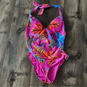 Bar III Macy’s One Piece Swimsuit Tropical Paradise Palms Pink Size Small