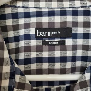 Bar III Men's Black, Blue and White Checkered Shirt - No Holes or Stains