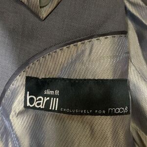 Bar III Mens Size 46R Slim Fit 100% Wool Suit Jacket Gray Two Button Lined