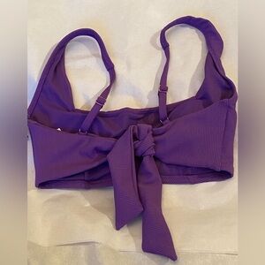 Bar III Micro Ribbed Hibiscus Tie Back Bikini Top Med