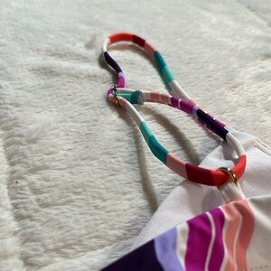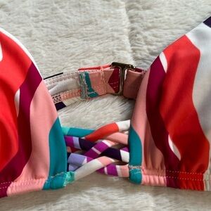 Bar III Multi Waves Printed Strappy Bralette Bikini Swim Top Pink Purple size Large
