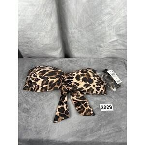 Bar III NATURAL Convertible Cheetah-Print Bandeau Bikini Swim Top, US X-Small