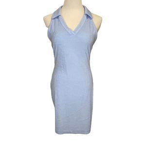 Bar III NWT Women Bodycon V-Neck Terry Cloth Mini Dress Blue Whisper Open Back L