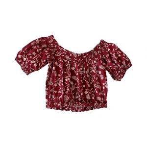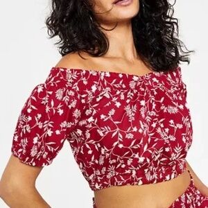 Bar III | New Red Off The Shoulder Floral Print Smocked Cotton Crop Top, Small