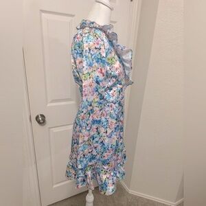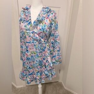 Bar III Petite Floral-Print Ruffled Tie-Waist Wrap Dress Size S