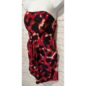 Bar III Pink Abstract Watercolor Strapless Pockets Short Mini Dress Size Medium