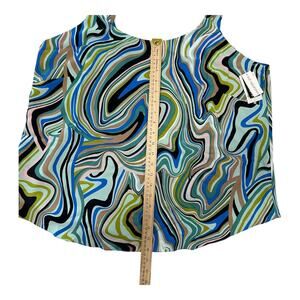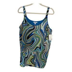 Item: Bar III Plus Size 1X Scoop-Neck Sleeveless Top Color/Pattern: Blue Combo (abstract print blue pattern) Fabric: Lightweight, quick-drying ,chiffon Design: Scoop neck, wide straps Fit: Regular fit, specifically designed for plus-size women Versatility: Perfect for travel, parties, casual wear, and business meetings Season: Ideal for summer Care: Machine washable for easy care Style: Stylish, colorful, and versatile addition to your wardrobe!