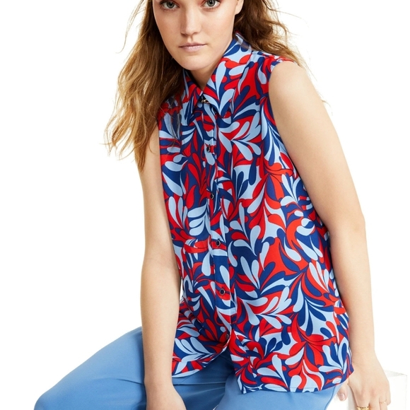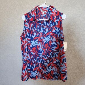Bar III Printed Sleeveless Button Down Shirt Size LARGE new With Tags
