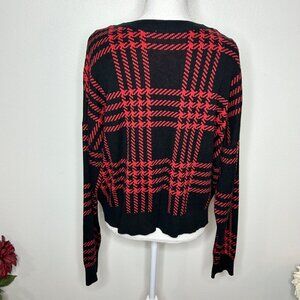 Bar III Red Black Plaid Cropped Cardigan Sweater Women's Size XXL Preppy