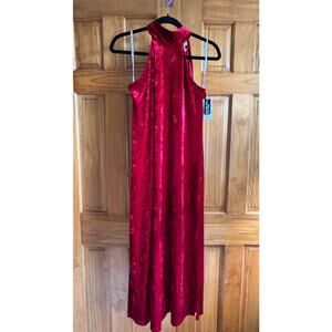 Bar III Red Crushed Velvet Halter Midi Dress – Size XS – NWT