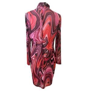 Bar III Red Pink Black Long Sleeve Sheer Dress Large