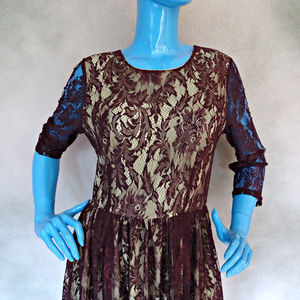 Delicate, silky soft purple maroon lace overlay with shiny metallic inlay