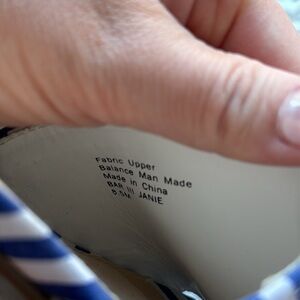 These sandals are a blue and white stripe. Super cute ruffle detail at vamp. Barely used, size 8.5.
