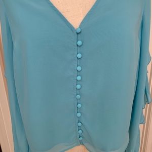 V-neck; button-front closures