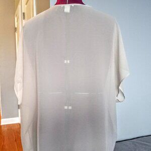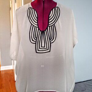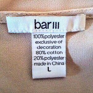 Sheer pale beige chiffon top from Bar III features a black accent on the bodice.