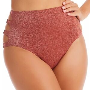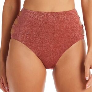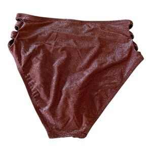Bar III Shimmer Core Sparkly Brown Hip Slash Cutout High-Waisted Bikini Bottoms