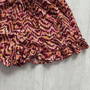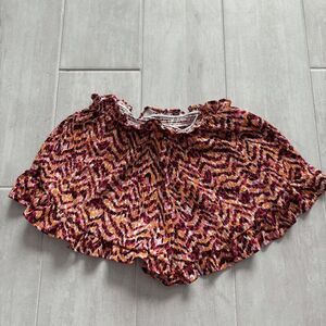 Pull-on shorts from Bar Ill. Adorned with a delicate ruffle trim. Tiger tracks / zigzag / pink orange black