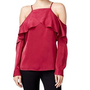 Bar III Ruffled Silky Cold Shoulder Square Neck Blouse.