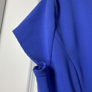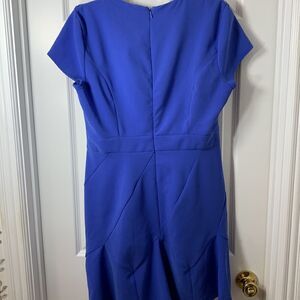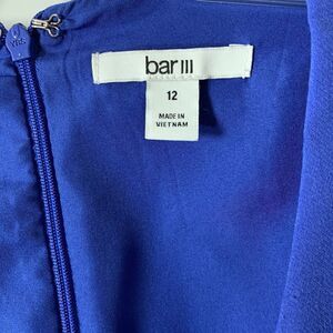 Bar III short sleeve size 12 dress with swing skirt. Royal blue. 35 inch foam shoulder seem to hemline. See photos for complete description/details. Smoke free & Pet free home.