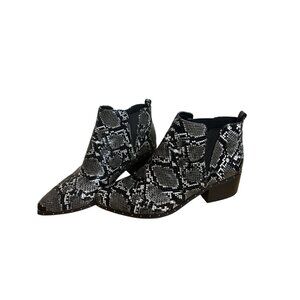 Bar III Size 8.5 Snake Skin Print Synthetic Pull On Black White Ankle Boots