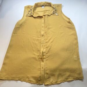 Bar III Sleeveless Studded Collared Button Small Mustard Color Yellow Top