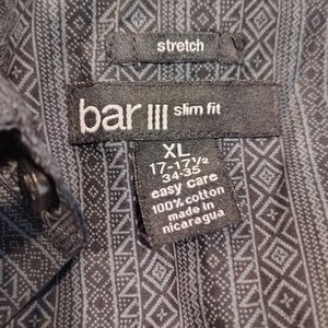 Bar III Slim Fit Black and Gray Geometric Button-Up Shirt 100% Cotton