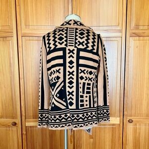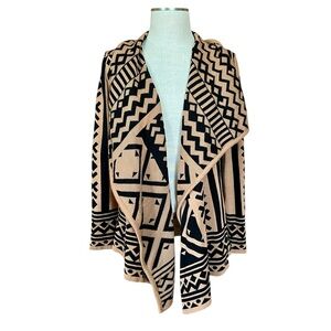 Bar III Small Black Brown Open Front Drape Cardigan Sweater Aztec Southwestern