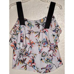 Bar III Small Printed Ribbon-Strap Off-The-Shoulder Top Multi Color Ruffle
