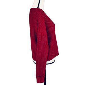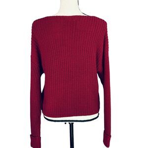 Bar III Small Sweater Long Sleeve Cuffed Stretch V-Neck Chunky Knit Burgundy Red