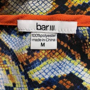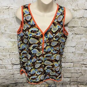 Bar III Womens Size Medium Orange Blie Snake Print Sleeveless V Neck Button Blouse in gently used condition. No stains, tears or rips.