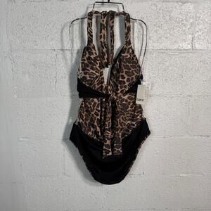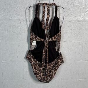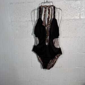 Bar III Solid Cowlneck One-Piece Swimsuit animal print multi, L MSRP $94