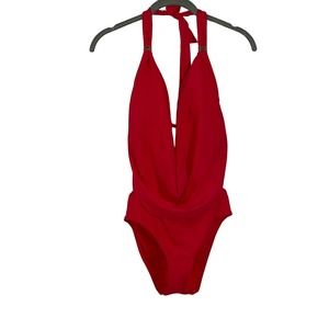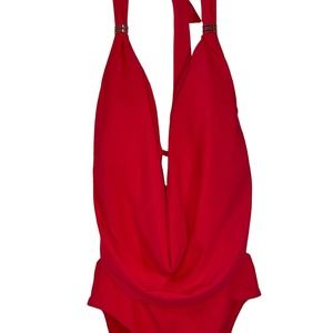 Bar III Solid Cowlneck One-Piece Swimsuit red-pink US X-Small