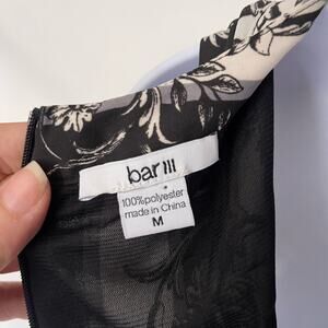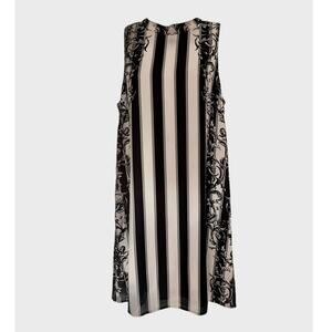 Bar III Stripe Shift Dress Sz M Black Cream Floral Mod Retro Chic Cocktail 60s