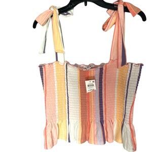 New with Tags, BAR III Striped Cotton Smocked Peplum Tie-Strap, Color is called Sherbet Stripe My, Size Large, Retailed $59.50.